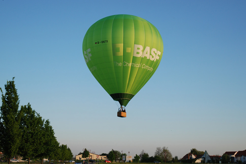 Der grüne Ballon der BASF, Ludwigshafen wurde in Deutschland hergestellt und ist einer der mittelgroßen Ballone in der Skytours-Heißluftballonflotte, mit einem Hüllenvolumen von 4.250 m³ und einer Höhe von über 25 Metern.